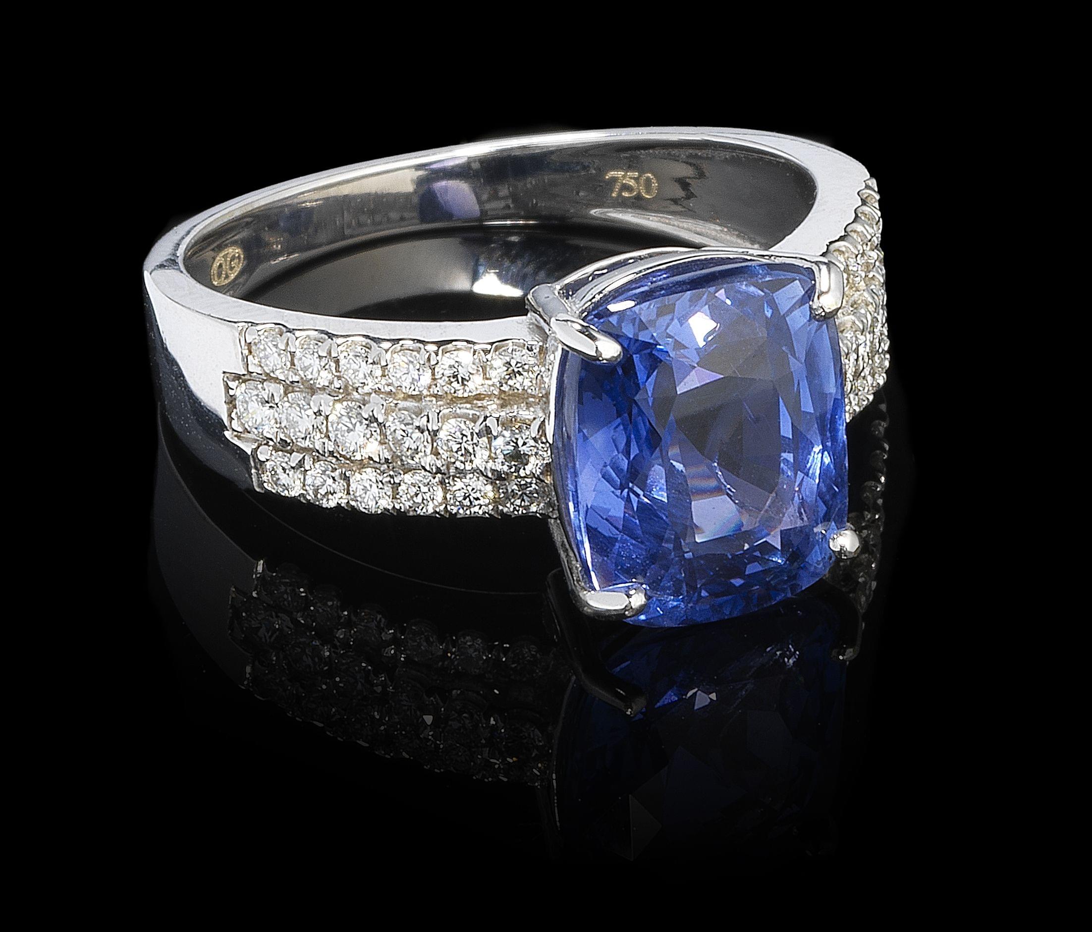 68. Bague sertie d'un saphir non chauffé (4,49 ct) épaulé de pavages de diamants