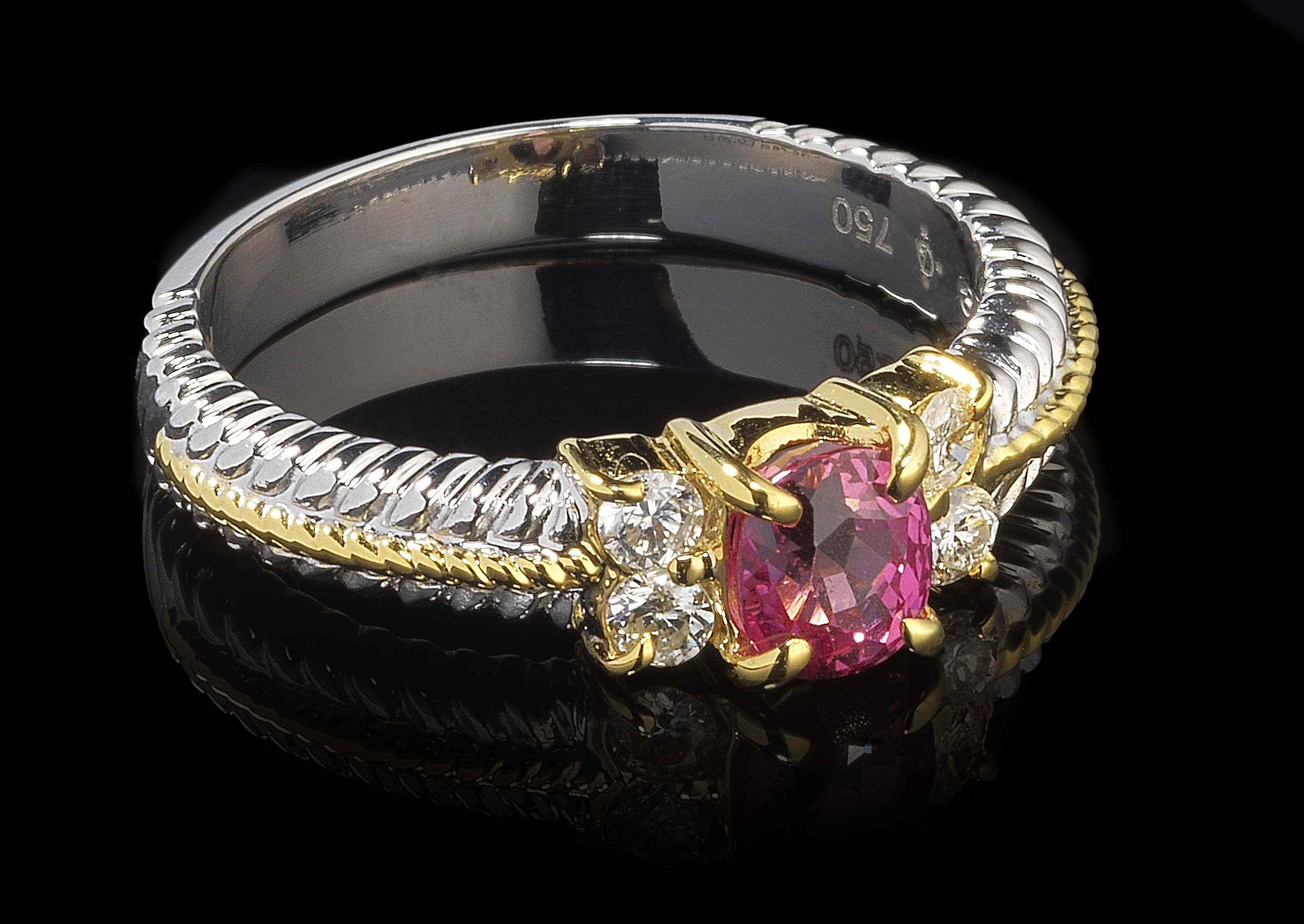 3418. *Bague sertie d'un saphir padparadscha rose-orangé non chauffé du Siam (0,78 ct)
