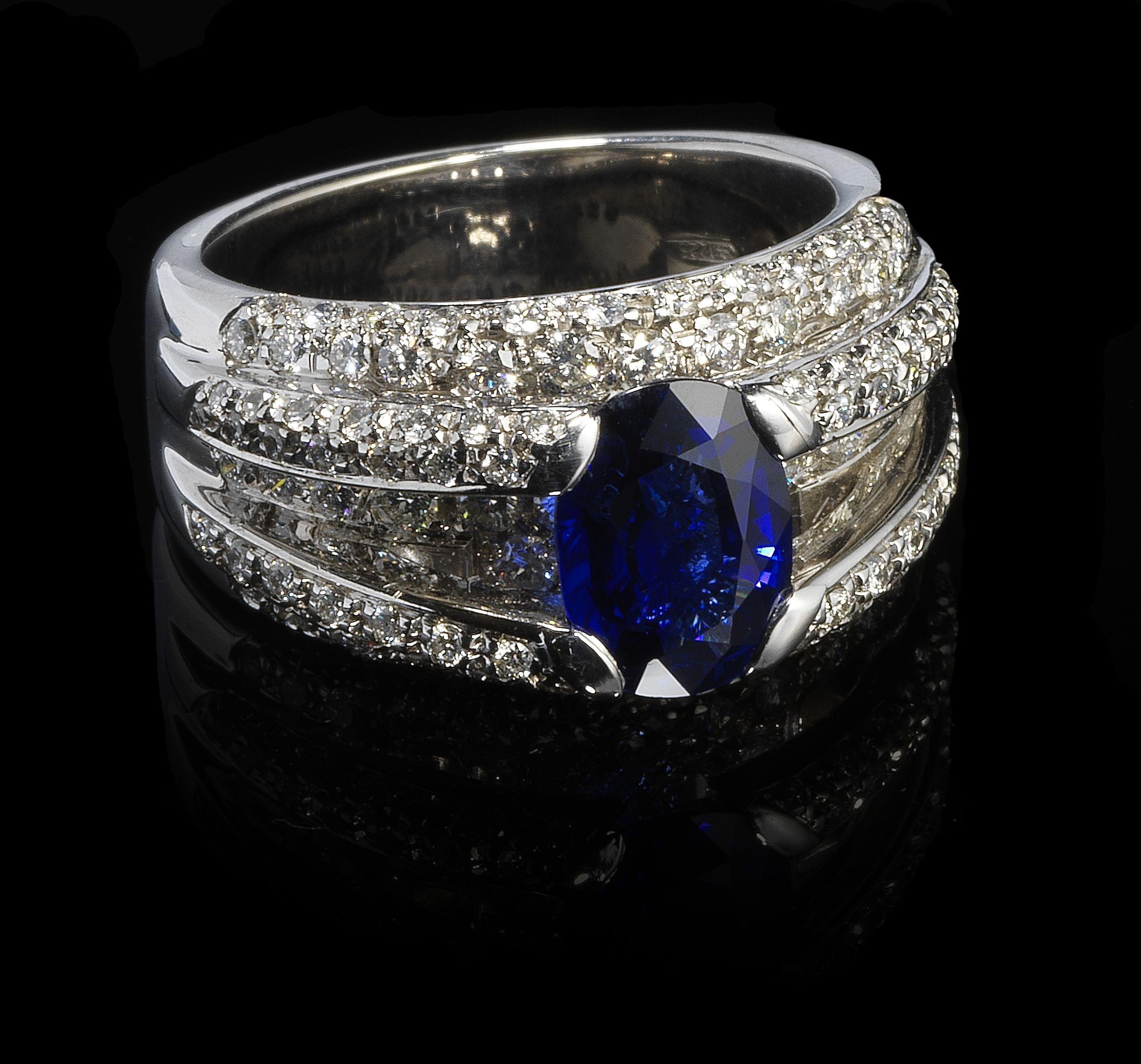 69. Bague sertie d'un saphir taille ovale (env. 1,6 ct) sur une monture pavée de diamants