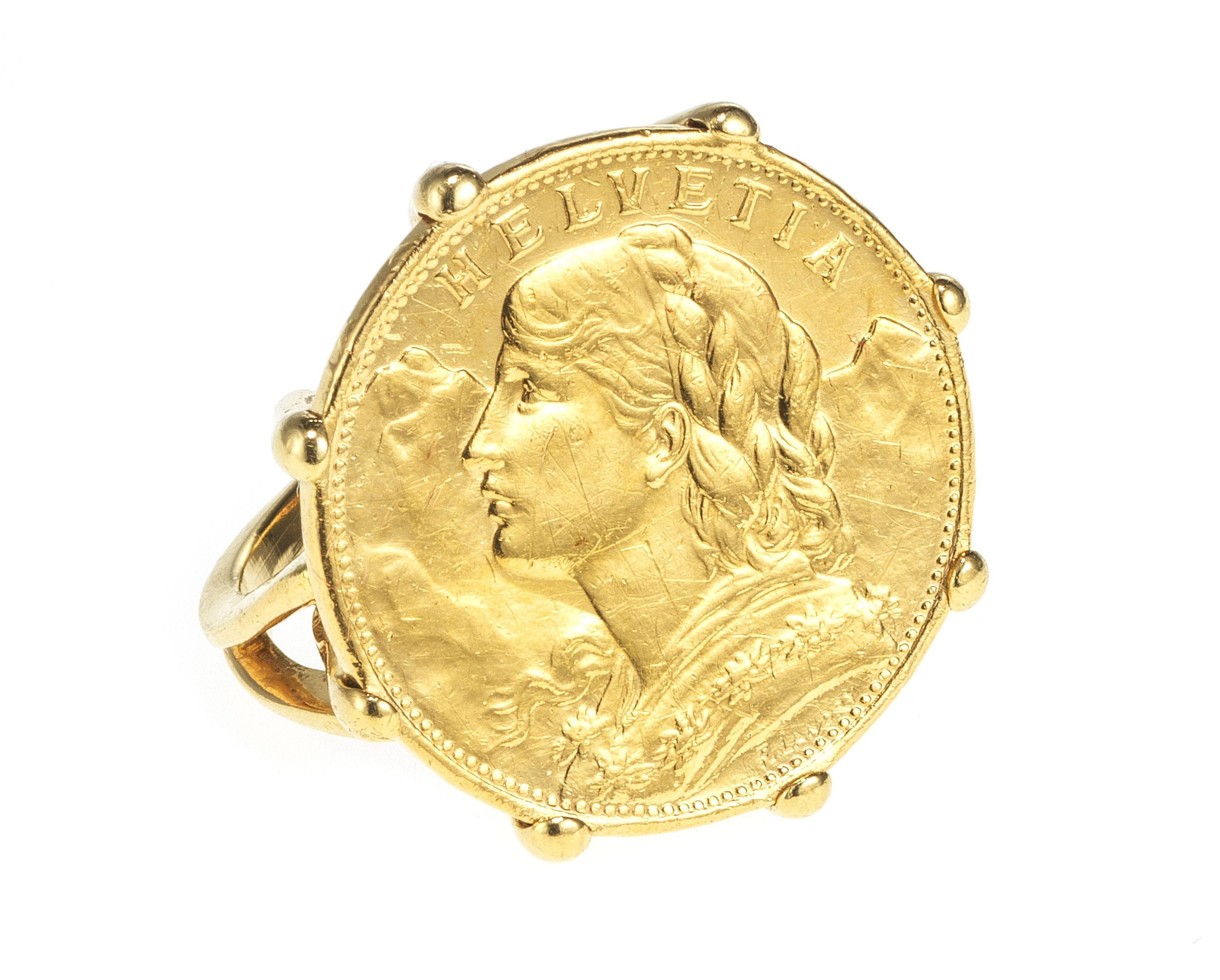 3341. Bague sertie d'un Vreneli daté de 1922