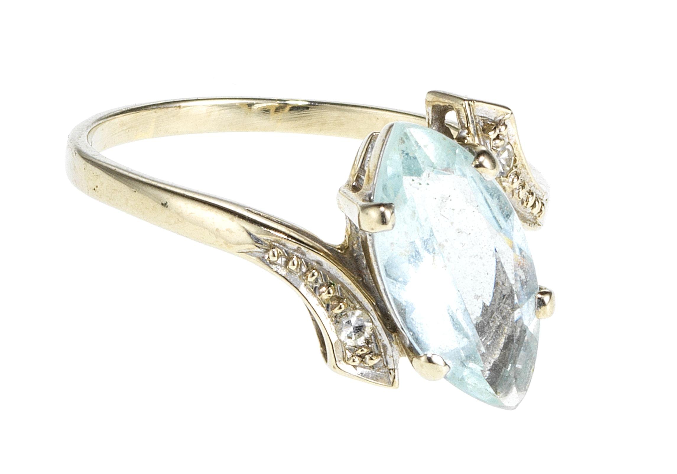 3182. *Bague sertie d'une aigue-marine taille marquise (env. 1 ct) épaulée de diamants