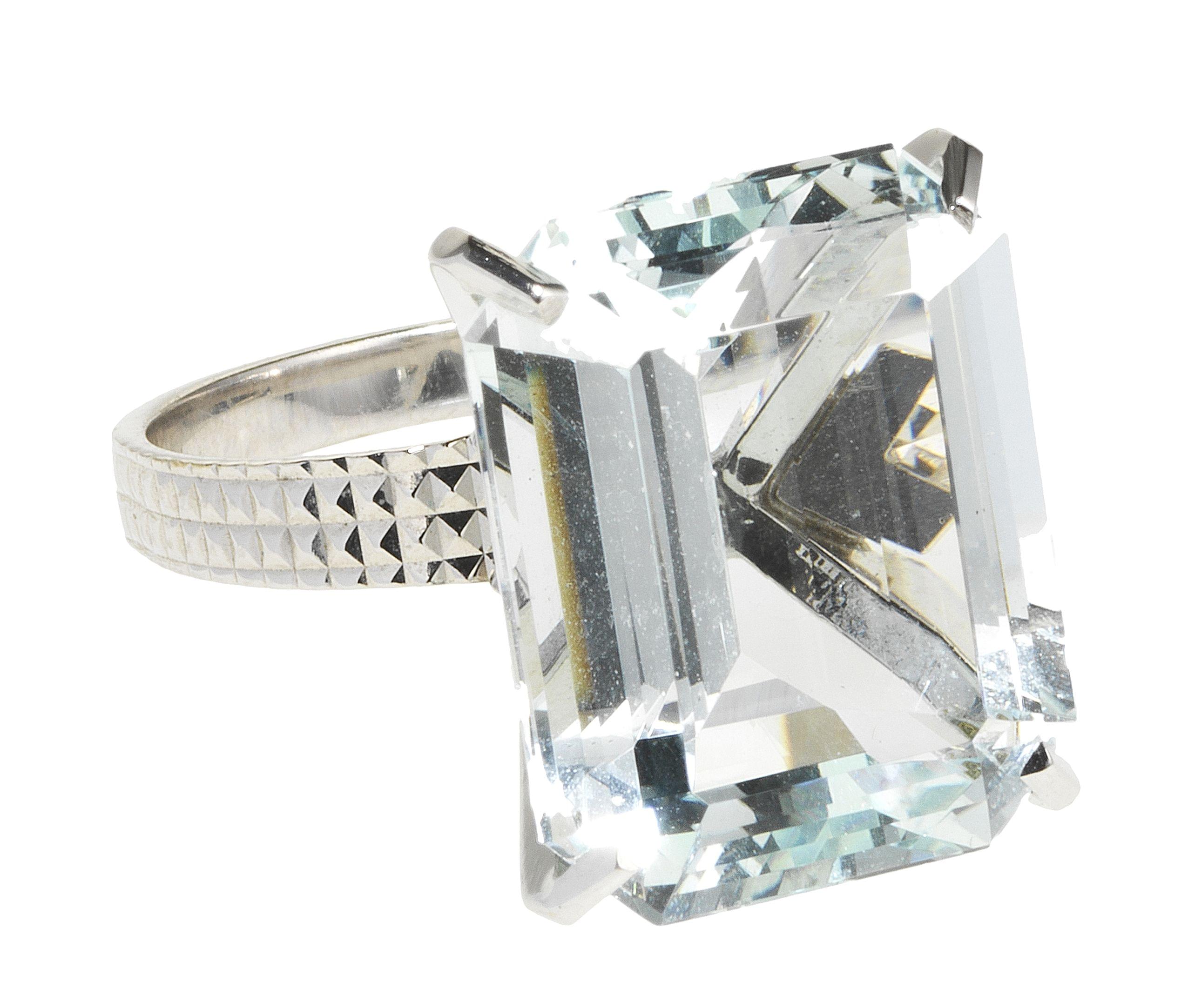 3002. Bague sertie d'une aigue-marine taille rectangle (env. 11 ct)