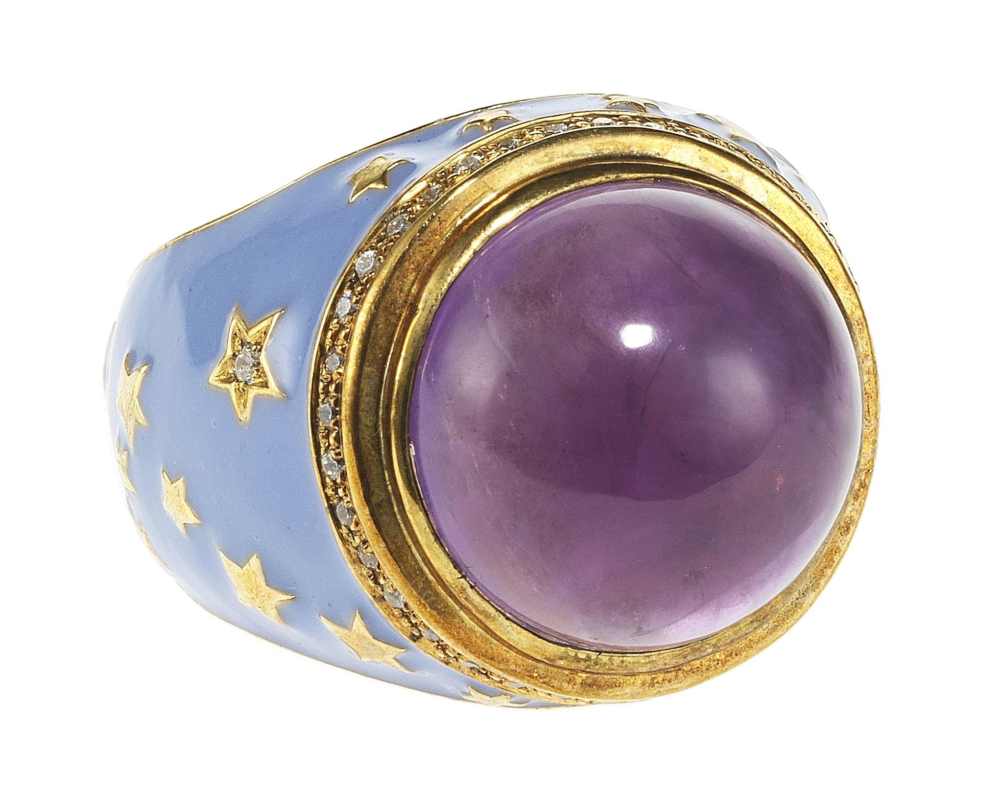 3109. *Bague sertie d'une améthyste ronde taille cabochon