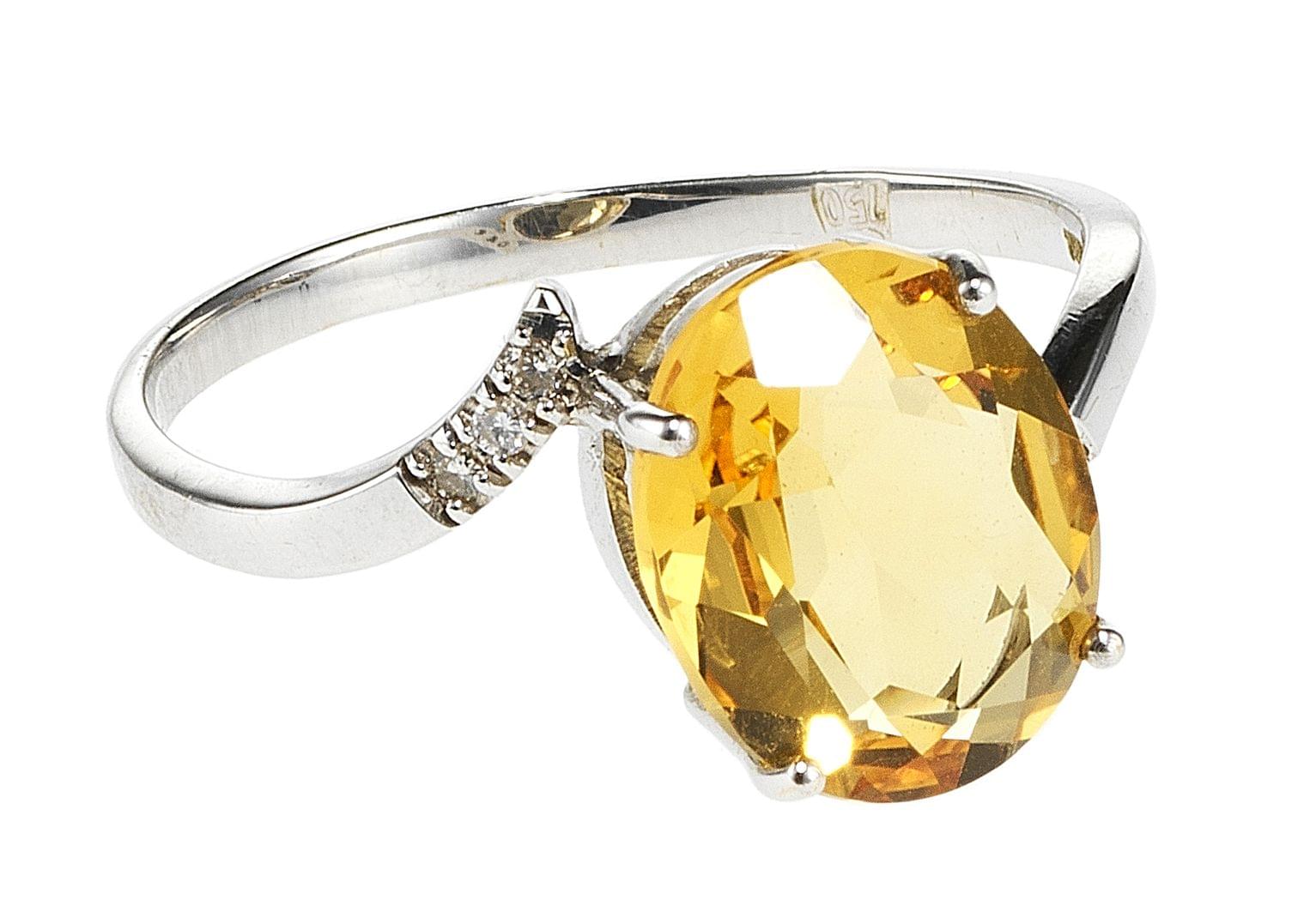 3116. *Bague sertie d'une citrine taille ovale (env. 1,6 ct) épaulée de diamants