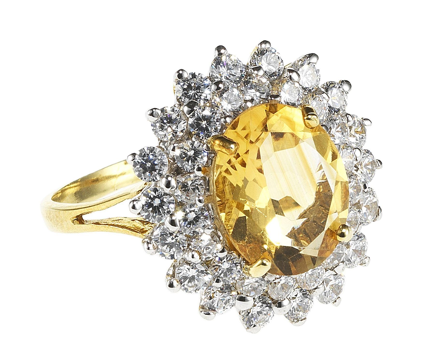 3138. Bague sertie d'une citrine taille ovale (env. 2,5 ct) entourée de topazes blanches