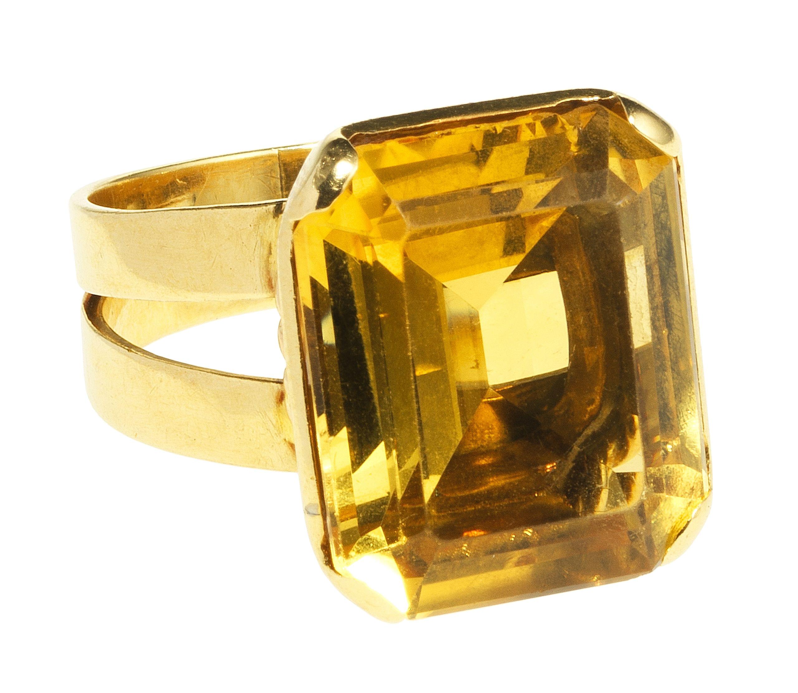 3257. Bague sertie d'une citrine taille rectangle (env. 10 ct)