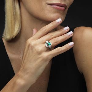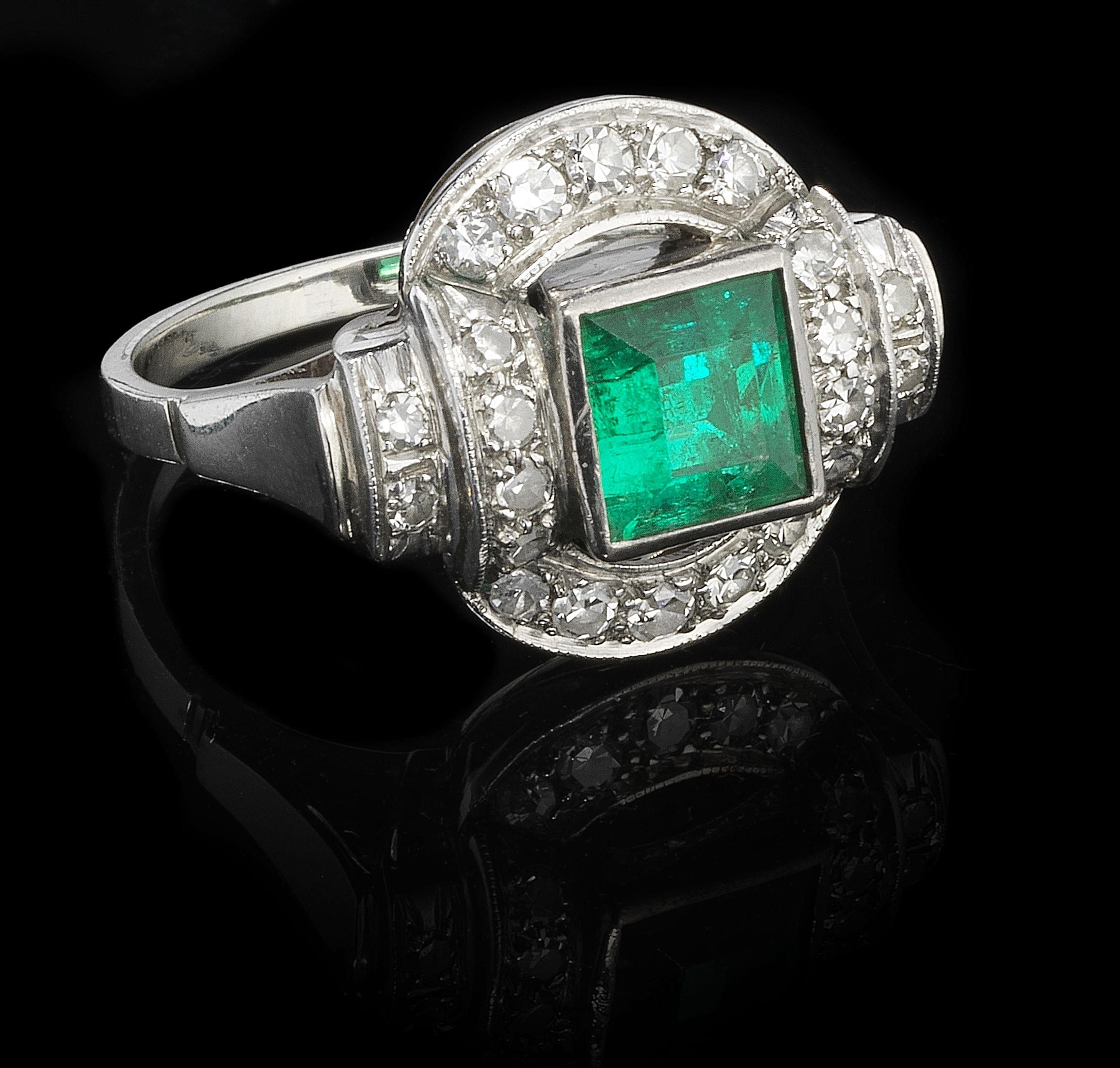 48. Bague sertie d'une émeraude carrée à degrés (env. 1 ct)