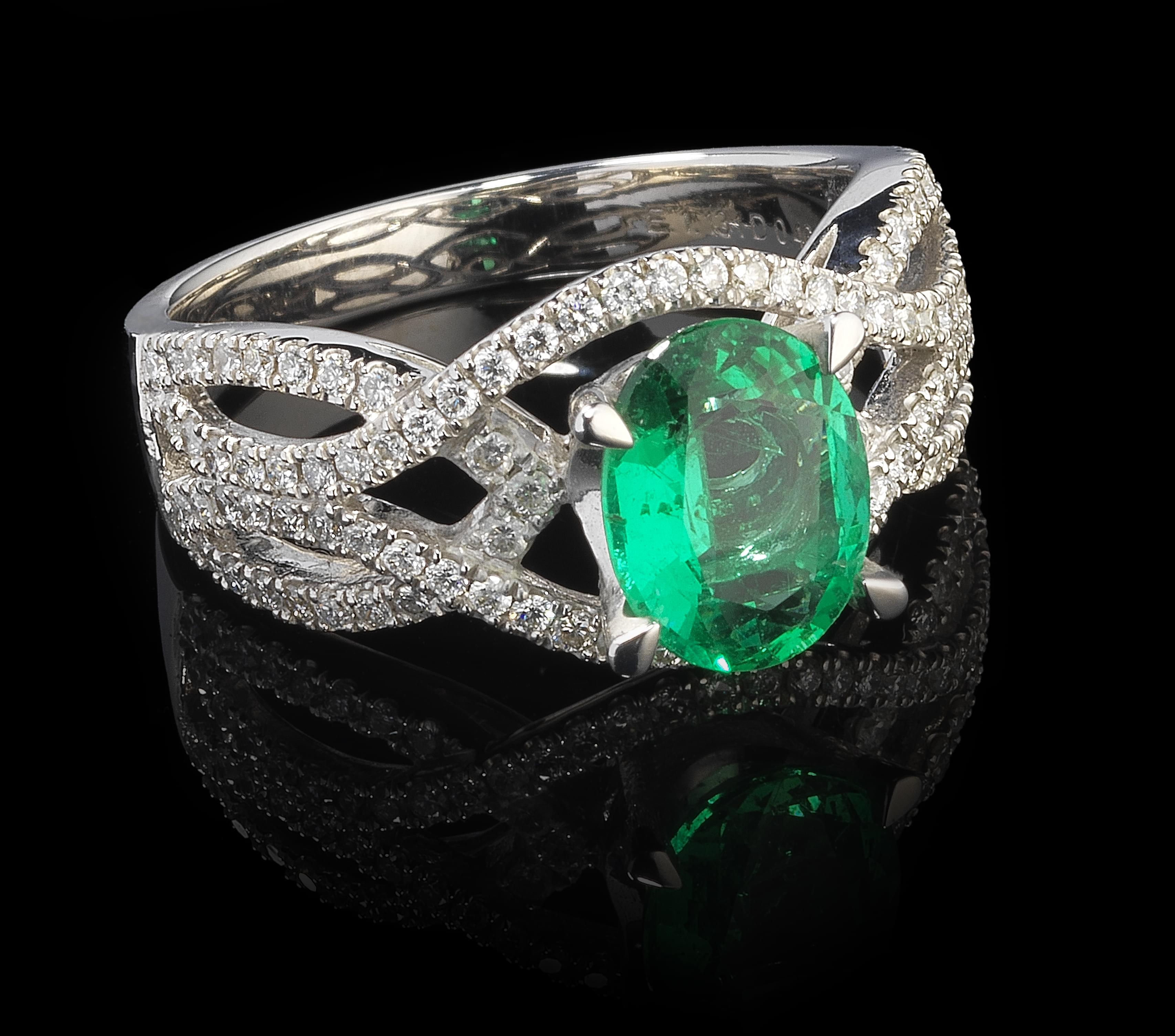 3438. Bague sertie d'une émeraude taille ovale (1,13 ct)