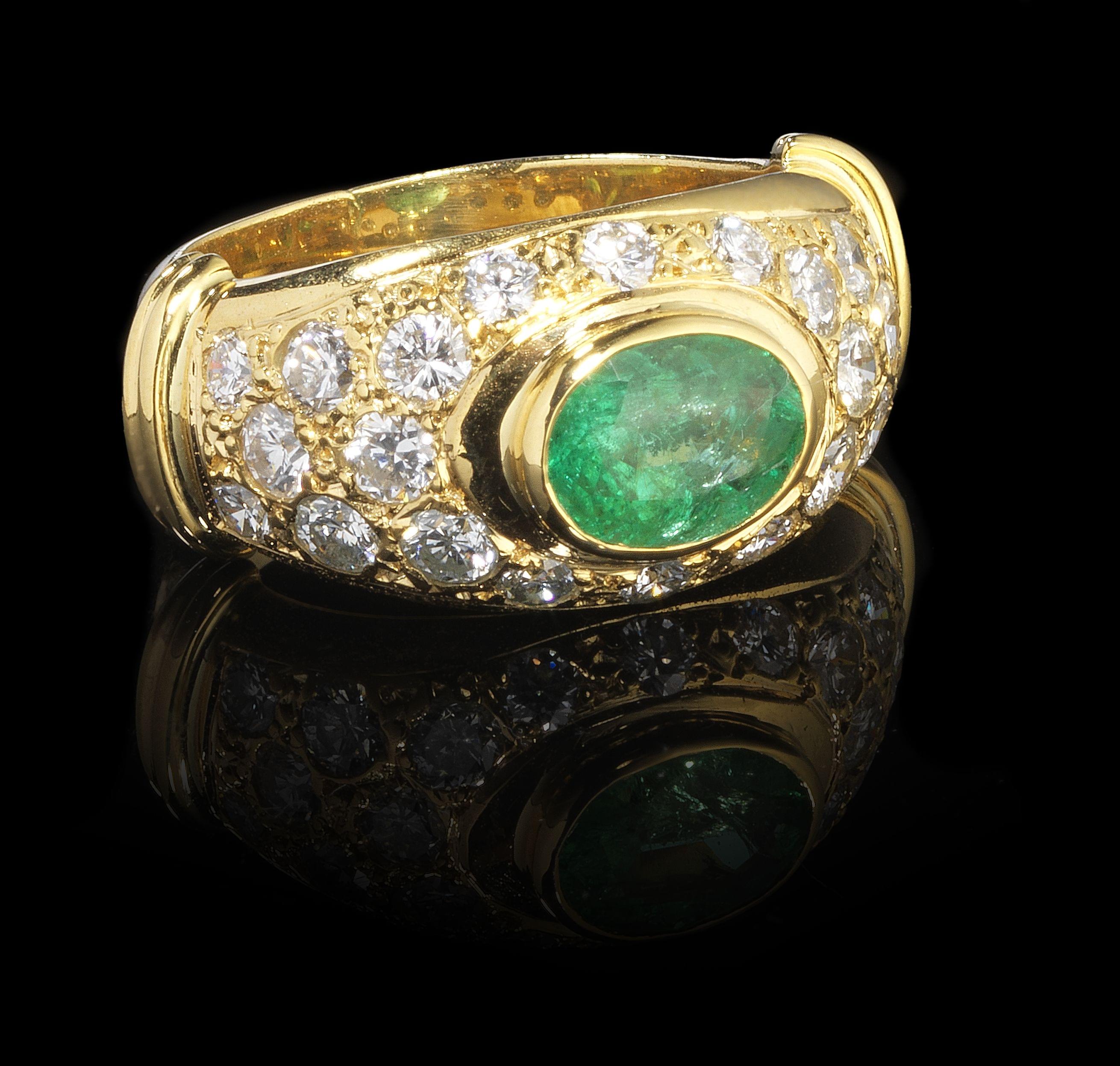 3501. *Bague sertie d'une émeraude taille ovale (env. 1,4 ct) dans un pavage de diamants