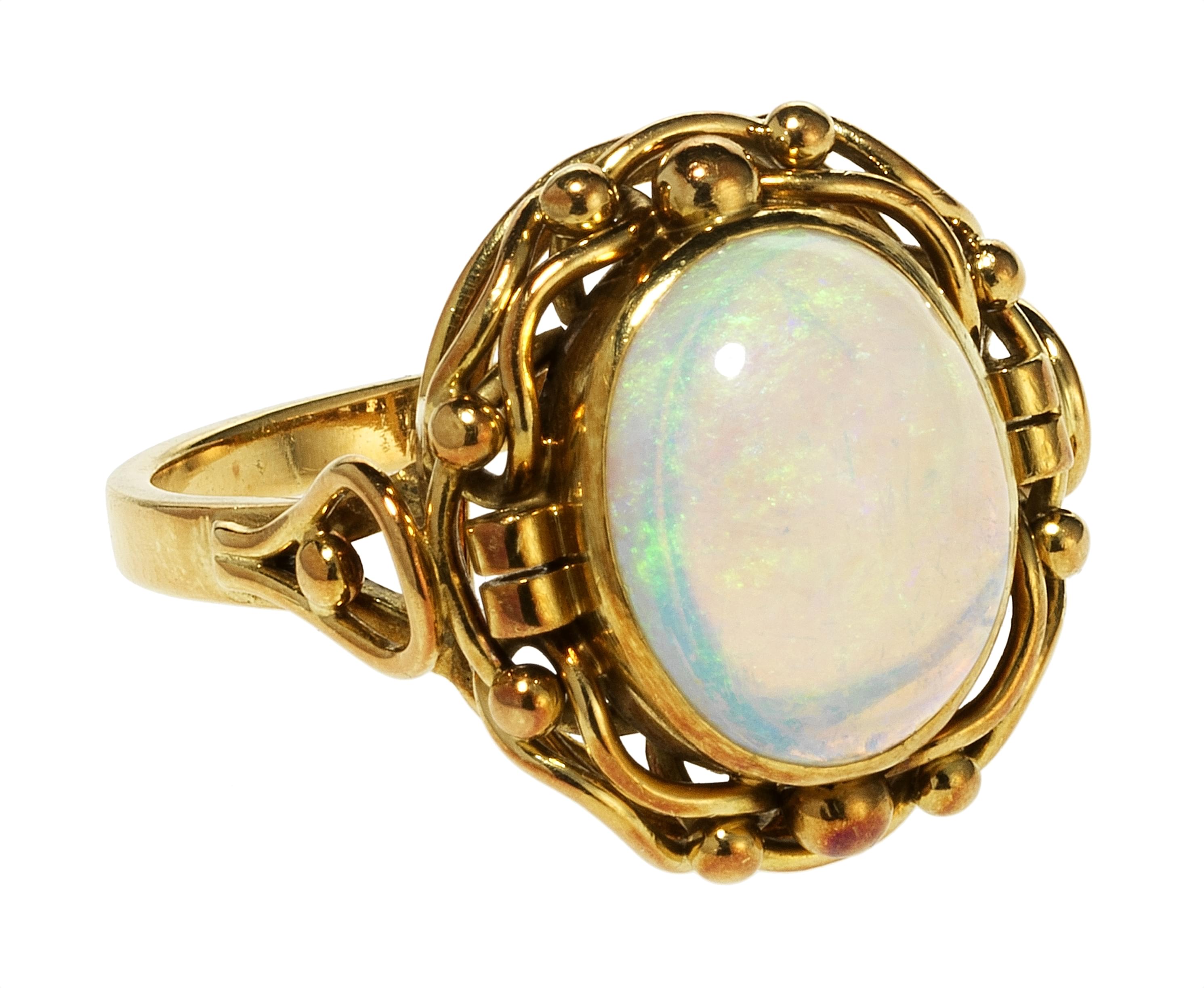 3356. Bague sertie d'une opale taille cabochon ovale