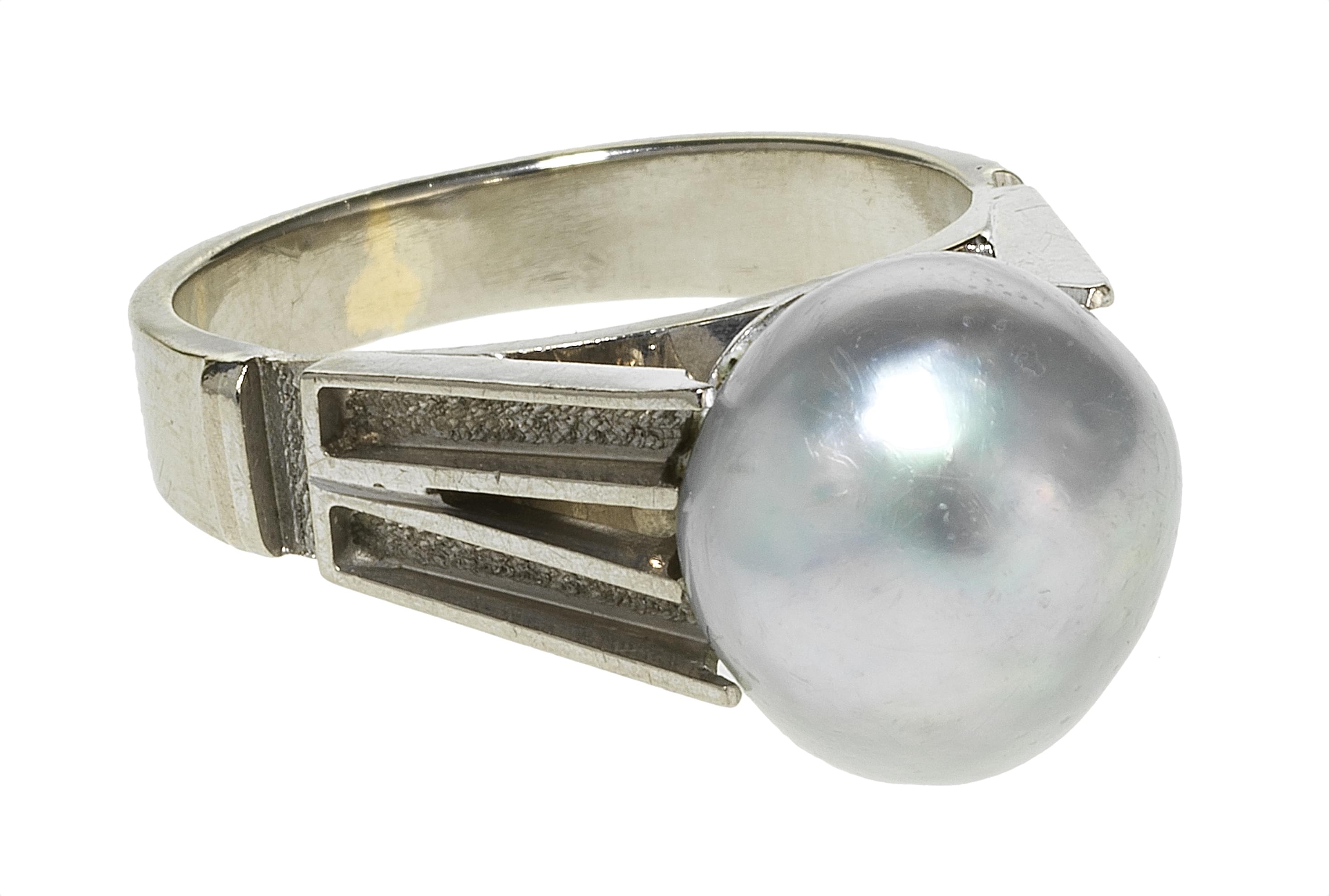 3190. Bague sertie d'une perle baroque (D env. 11 mm)