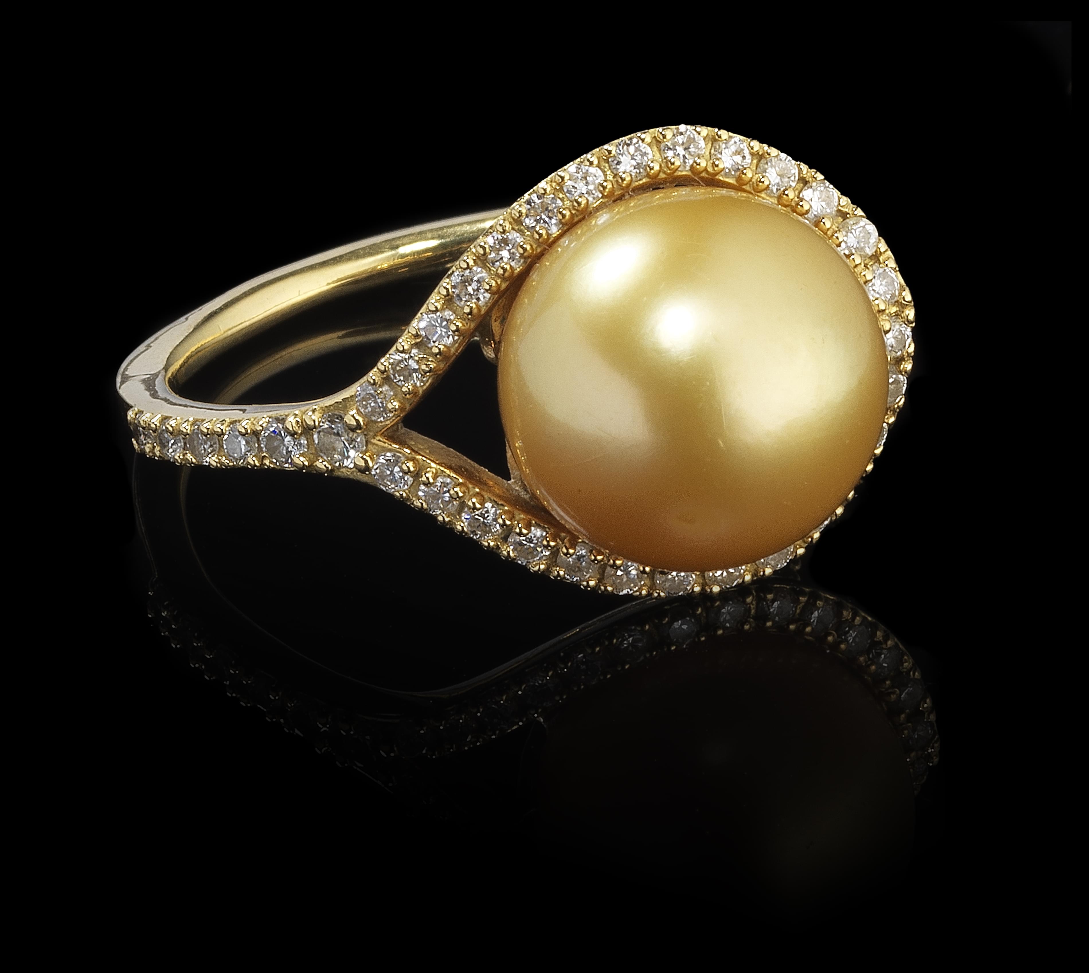 3378. Bague sertie d'une perle gold (D env. 11 mm)