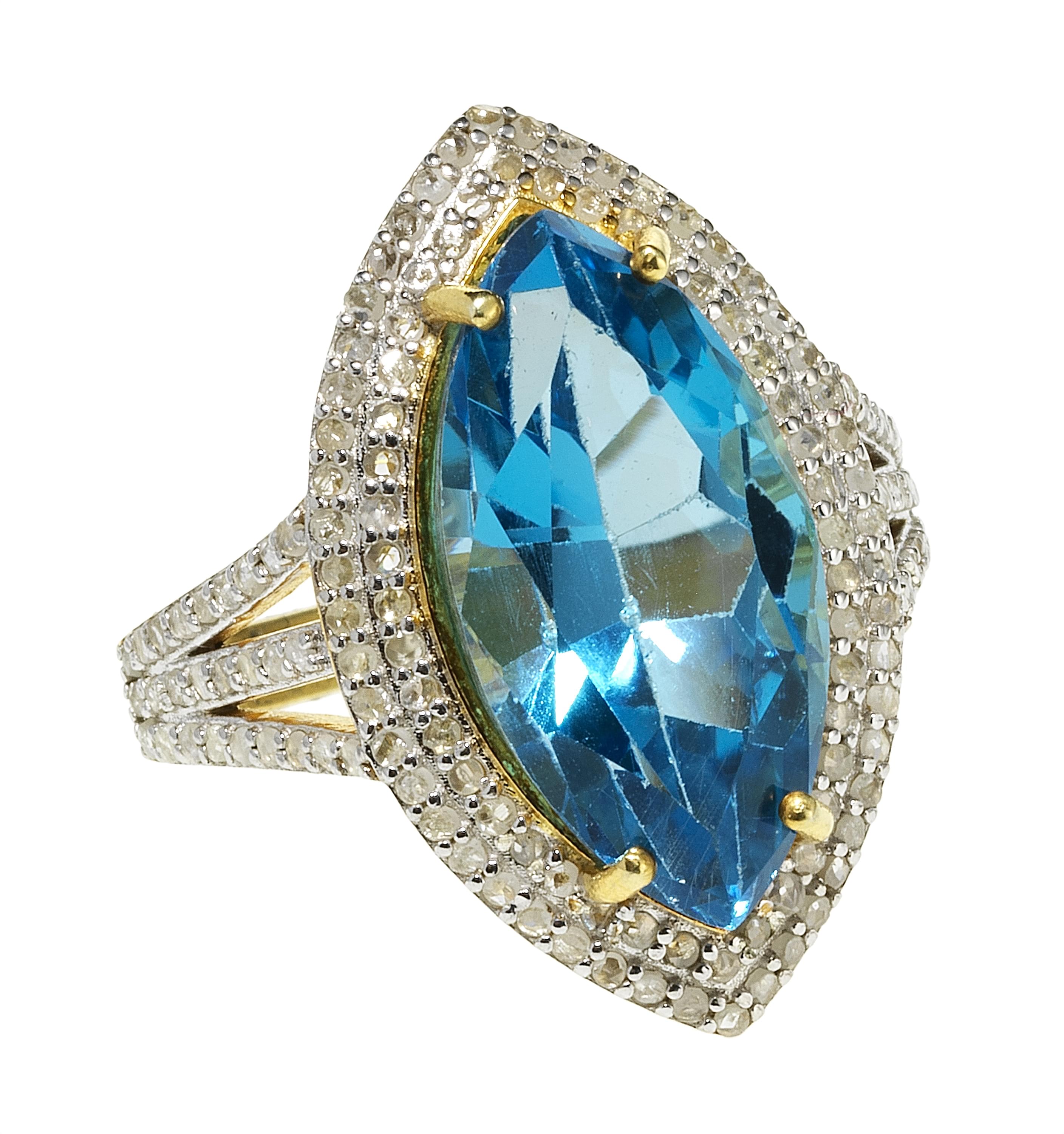 3010. *Bague sertie d'une topaze bleue taille marquise