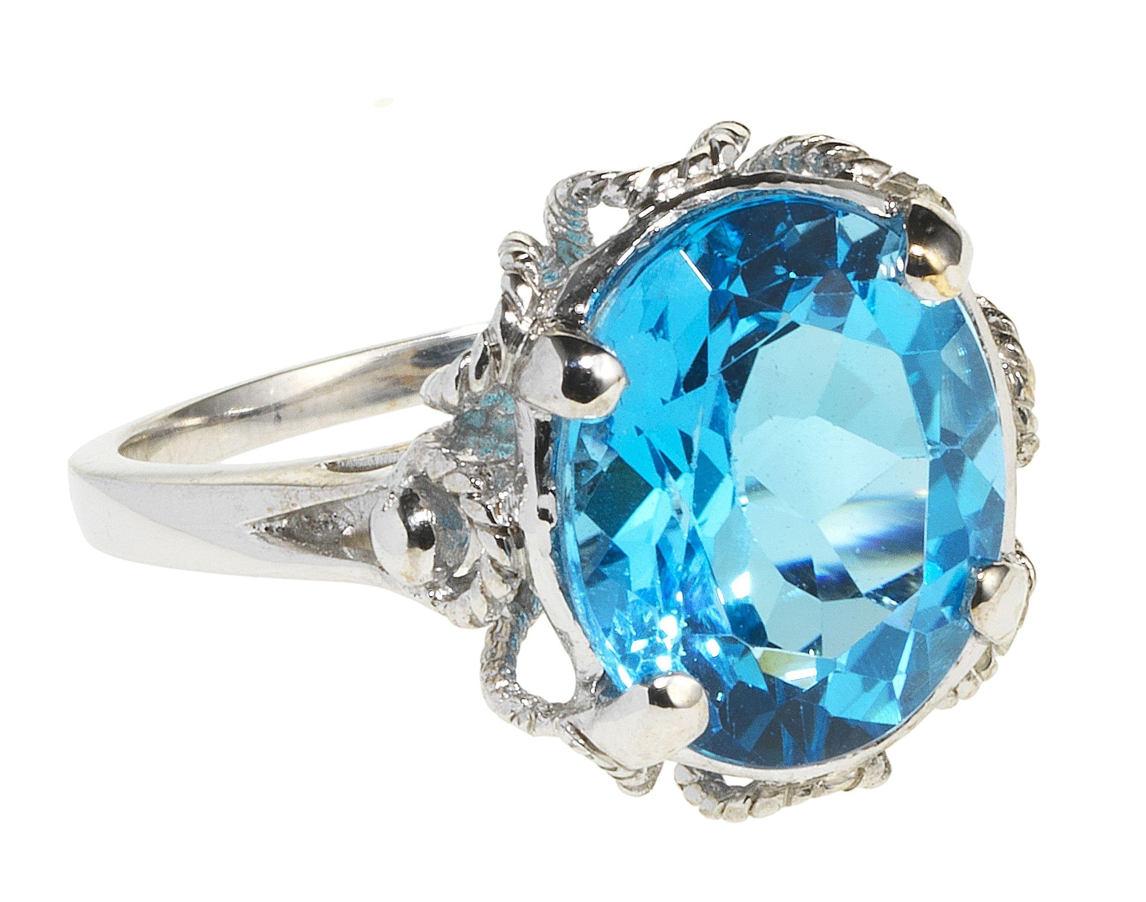 3102. *Bague sertie d'une topaze bleue taille ovale (env. 5 ct) sur une monture tressée ajourée