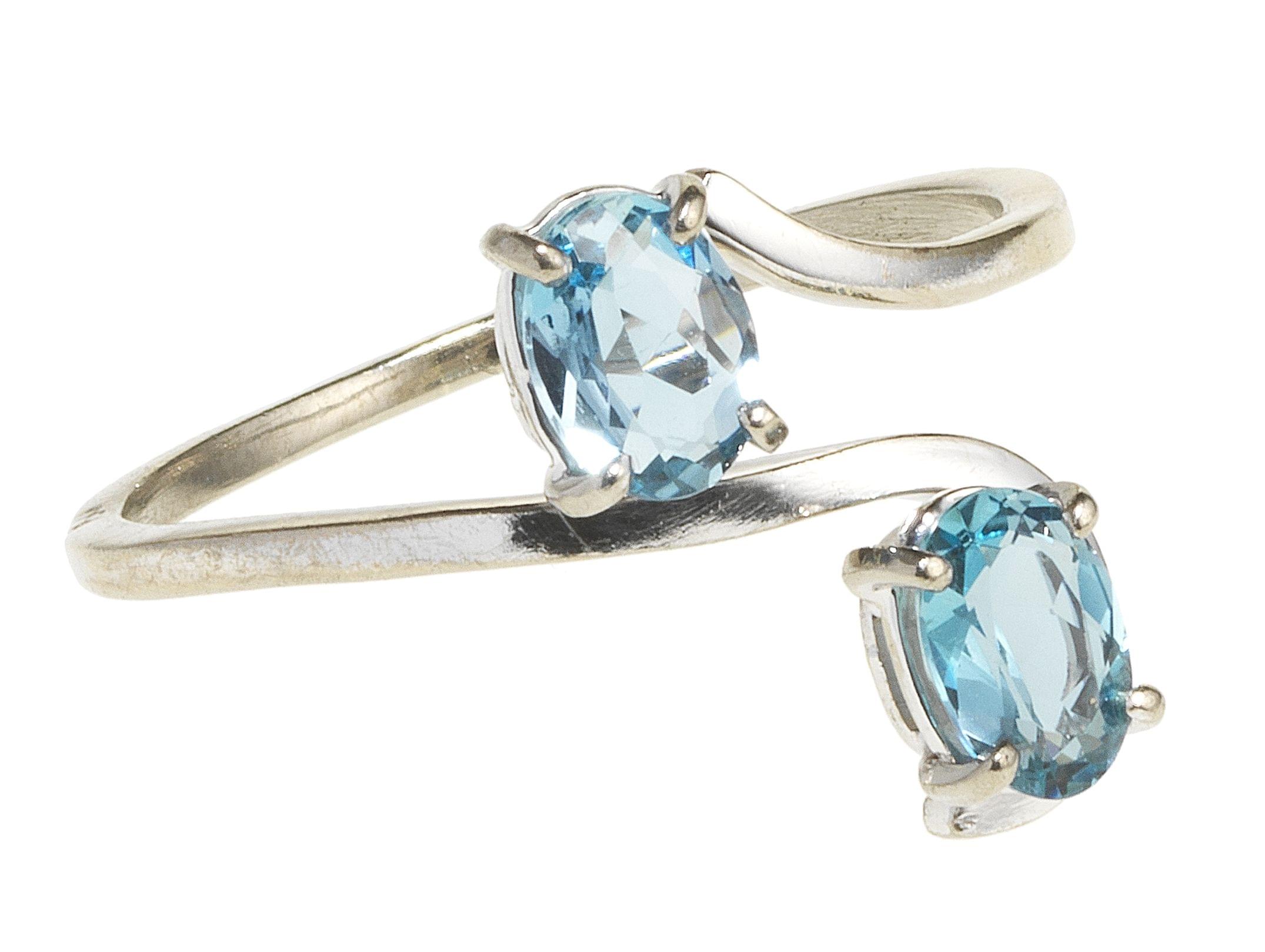 3274. Bague sertie de deux aigues-marines taille ovale en "Toi et moi" (total env. 0,6 ct)