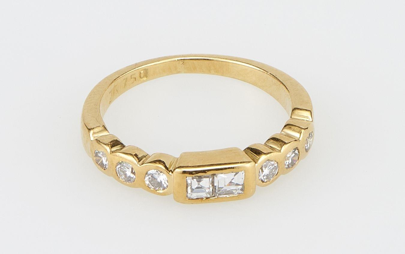 3405. Bague sertie de deux diamants taille carrée épaulés de diamants taille brillant