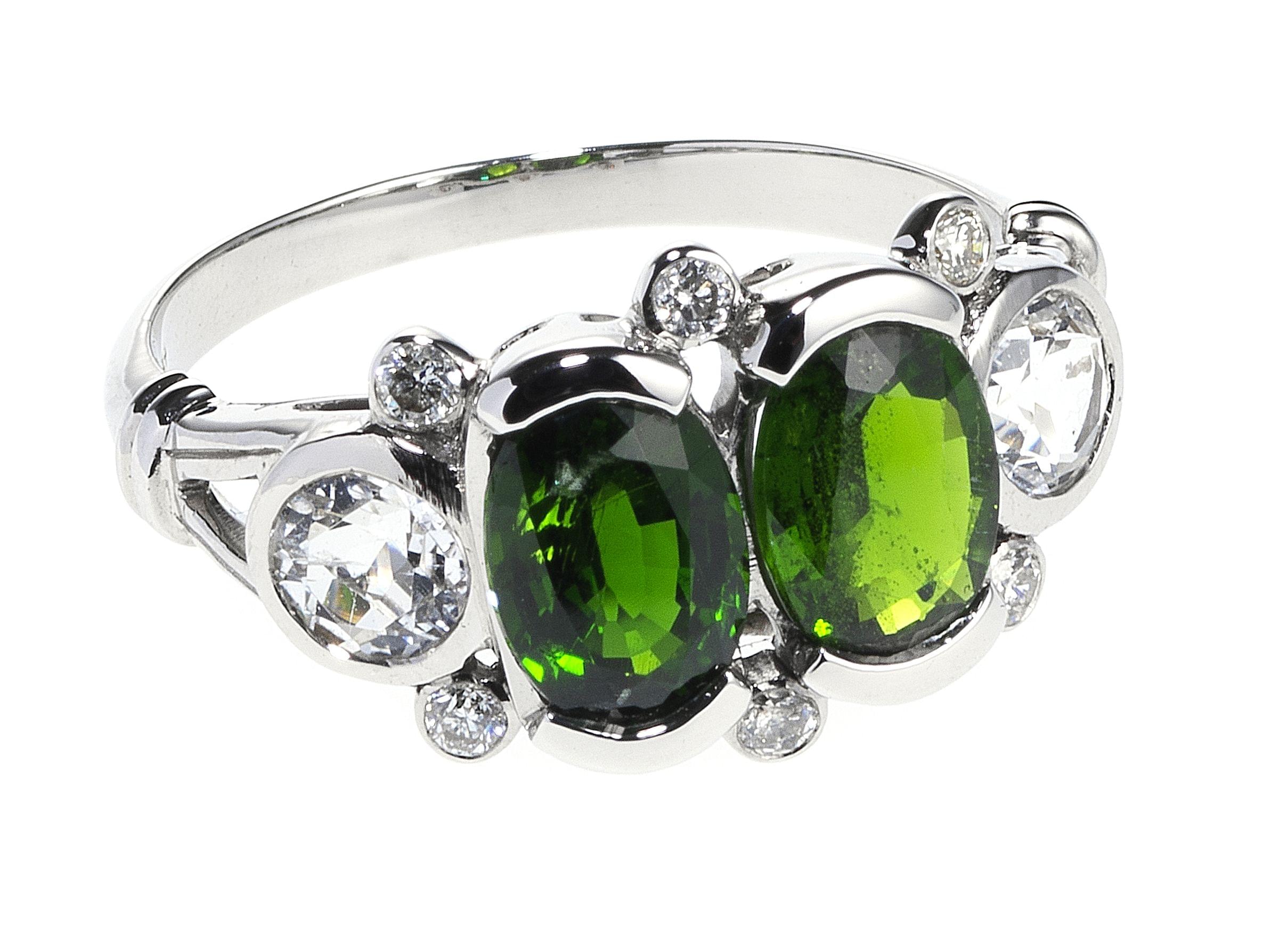 3227. *Bague sertie de deux diopsides taille ovale (env. 2 ct)