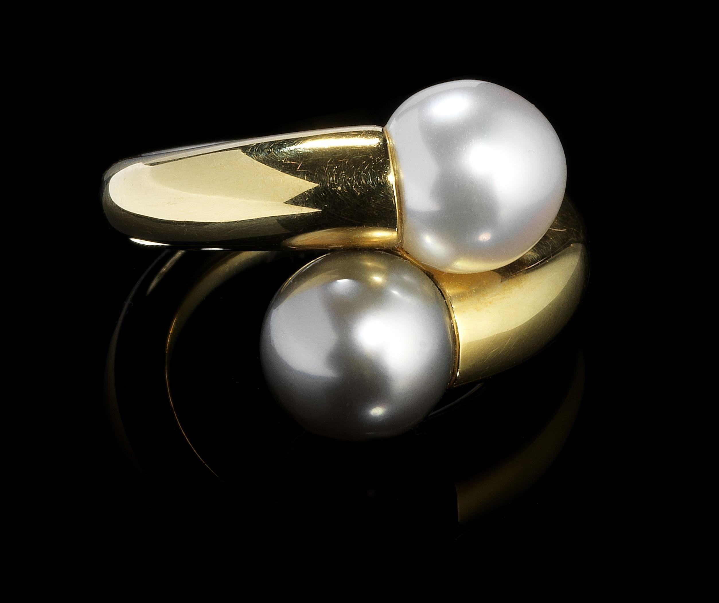 L'une blanche et l'autre grise (D env. 9 mm), or 750, doigt 51-11, poids brut 15 g