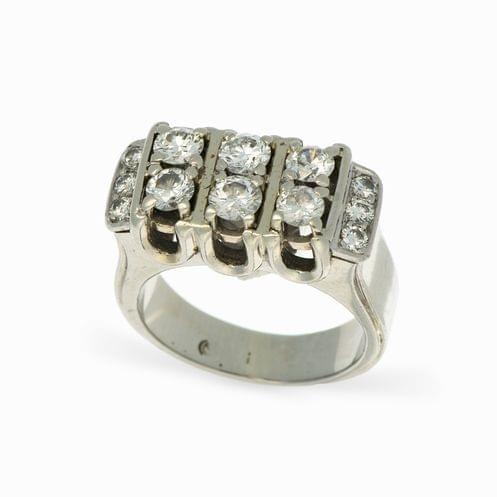 483. Bague sertie de deux rangs de trois diamants épaulés de diamants