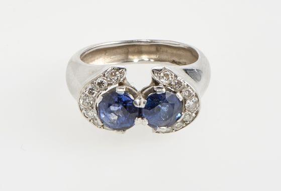 3236. Bague sertie de deux saphirs épaulés de diamants