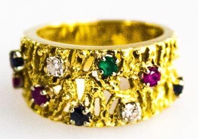 3049. Bague sertie de diamants, rubis, saphirs et émeraudes
