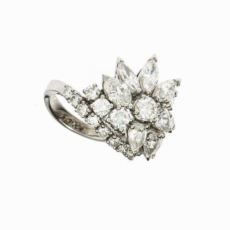 150. Corbeille en cristal taillé et monture à anse amovible ornée d'a...