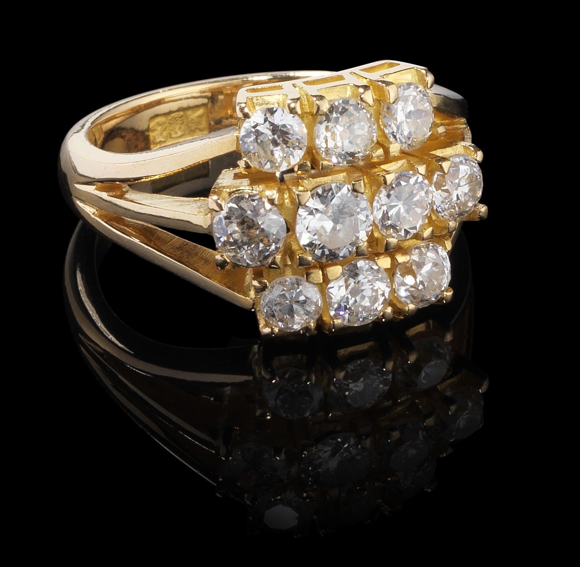 3273. Bague sertie de dix diamants taille ancienne sur trois lignes (env. 1,1 ct)
