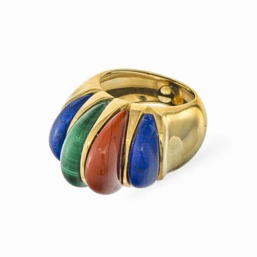 243. Bague sertie de malachite, lapis-lazuli et jaspe rouge