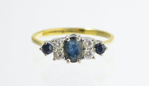 237. Bague sertie d'un saphir taille coussin (env. 5 ct) entouré de d...