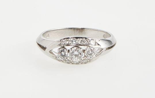 3181. Bague sertie de trois petits diamants rehaussés de deux rangées de diamants