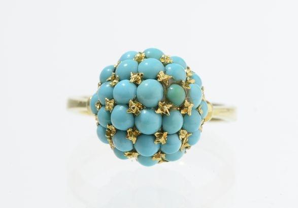 3195. Bague sertie de turquoises