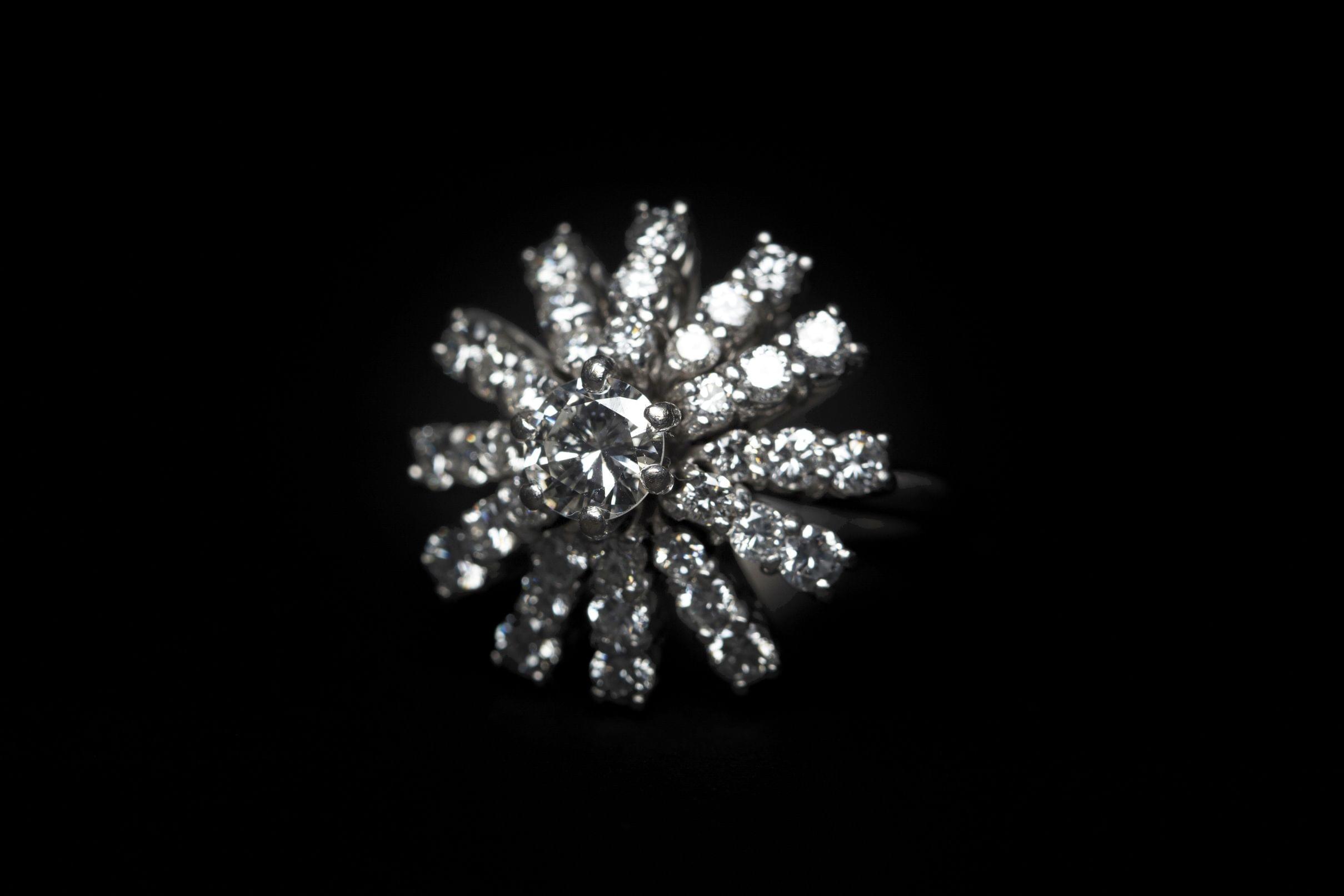 862. Bague sertie d'un diamant demi-taille (env. 0,6 ct) entouré de diamants (env. 1,2 ct)
