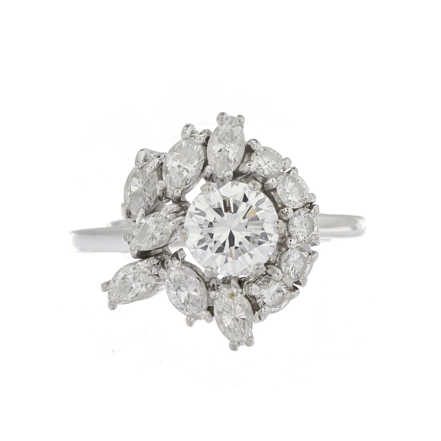 1011. Bague sertie d'un diamant (env. 0.85 ct) entouré de diamants taille brillant et taille marquise (env. 0.7 ct)