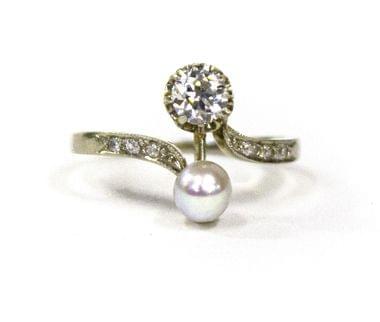 3177. Bague sertie d'un diamant et d'une perle en "toi et moi"