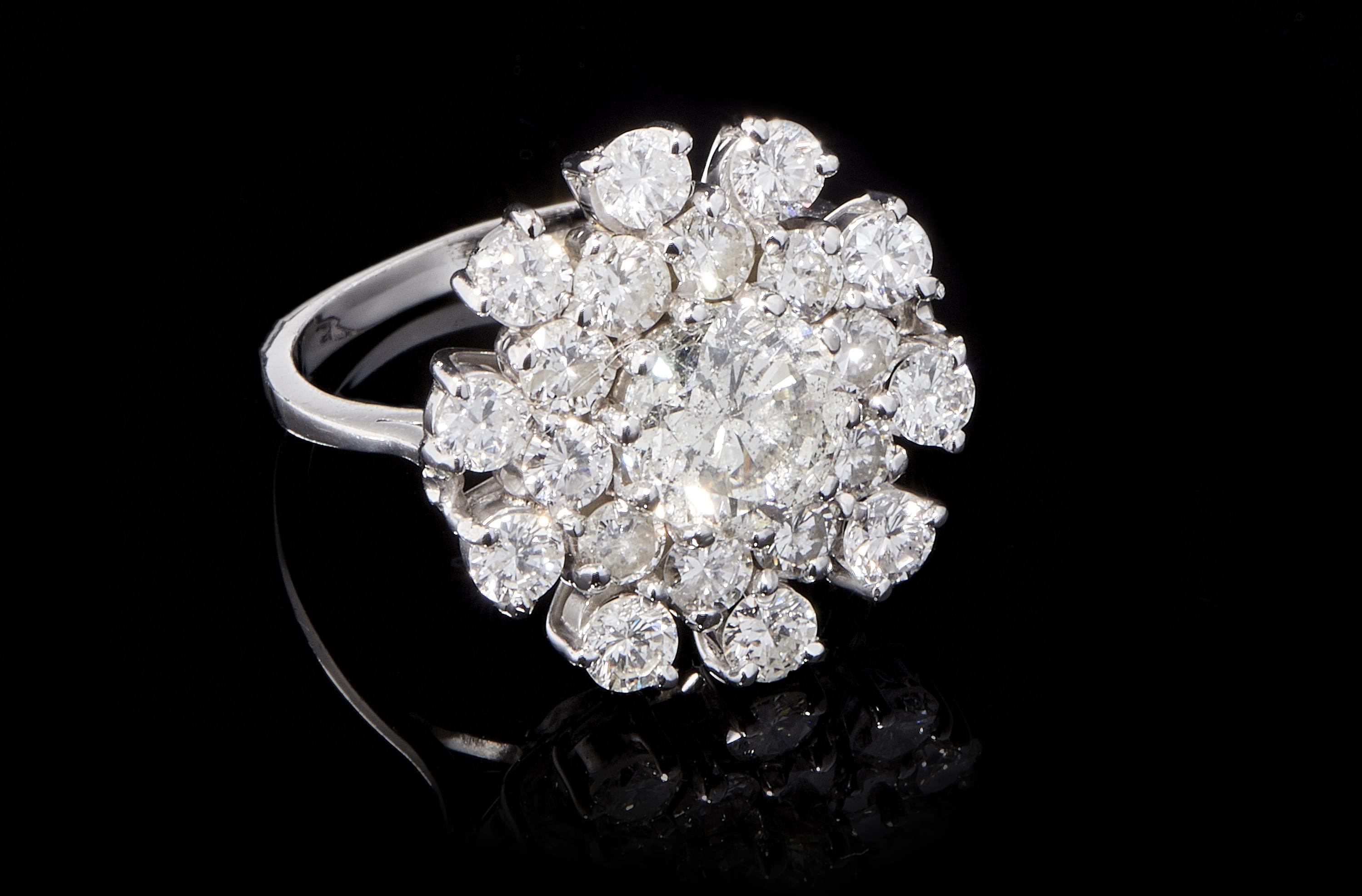 749. Bague sertie d'un diamant taille ancienne (1,8 ct) entouré de diamants