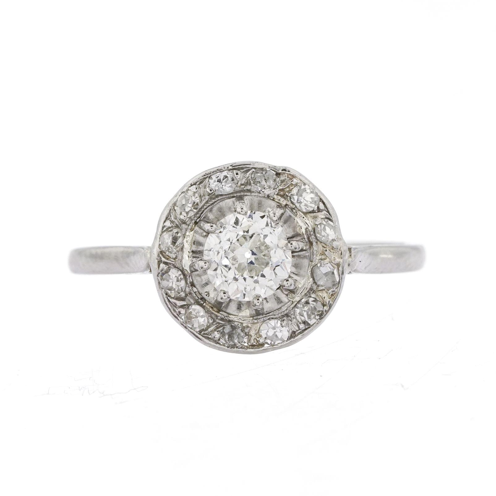 894. Bague sertie d'un diamant taille ancienne (env. 0.5 ct) entouré de diamants