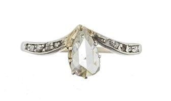 3120. Bague sertie d'un diamant taille hollandaise épaulée de roses de diamants