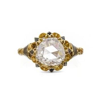 63. Bague sertie d'un diamant taille hollandaise et émaillée de noir
