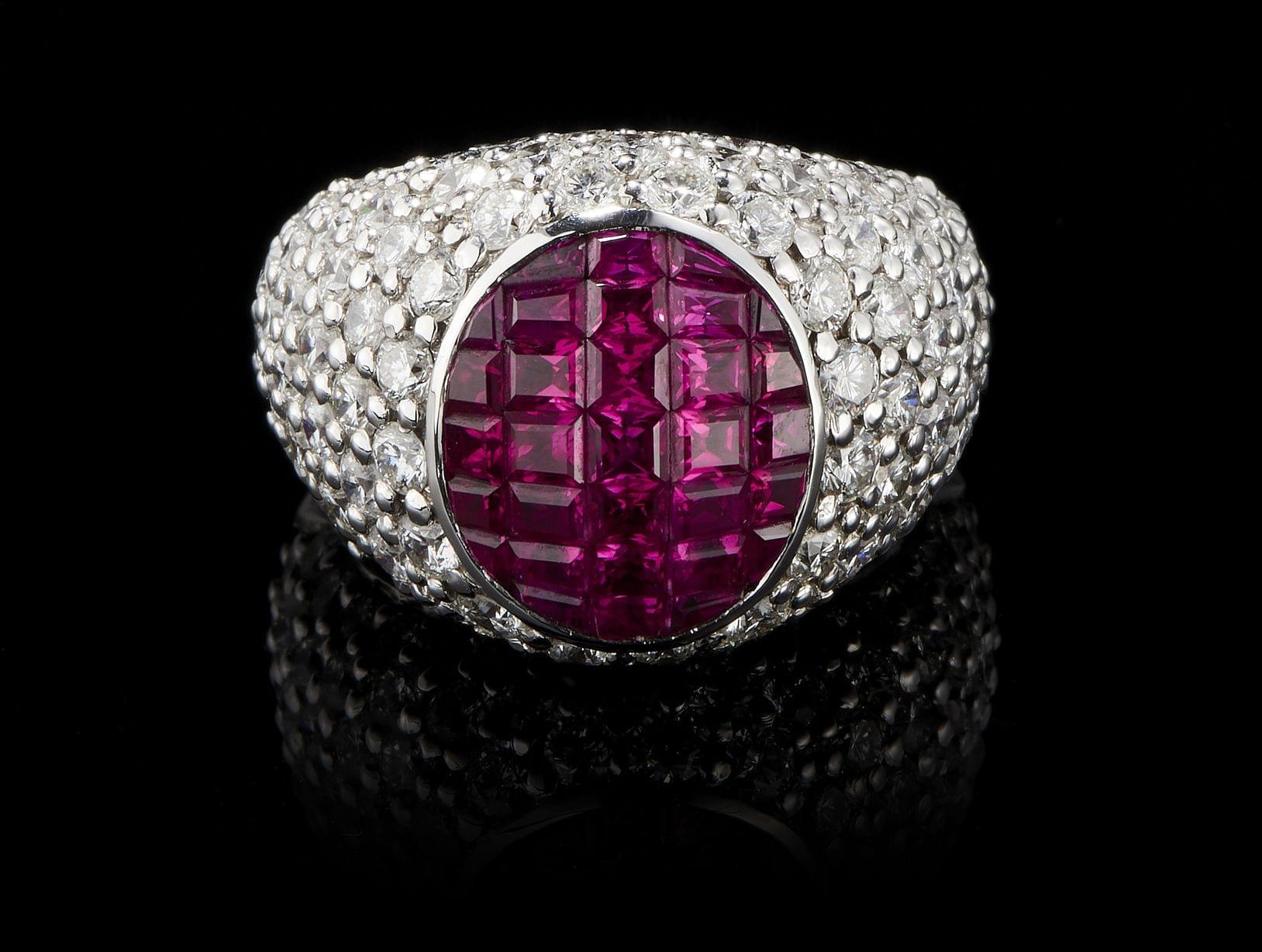 175. Bague sertie d'un pavage de rubis en serti invisible (env. 4,5 ct) entouré d'un pavage de diamants (env. 5,8 ct)