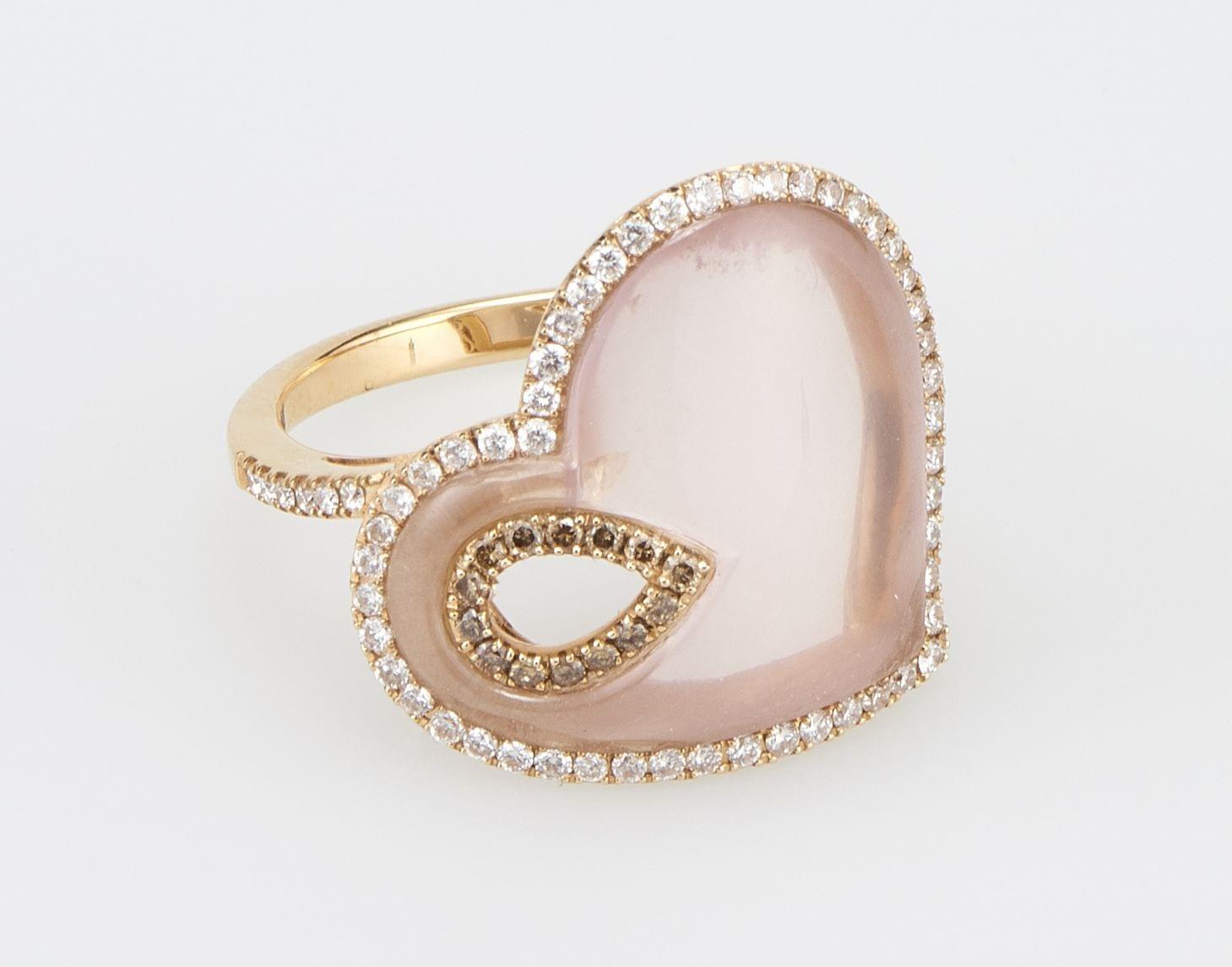 3423. Bague sertie d'un quartz rose de forme cœur ajouré et entouré de diamants