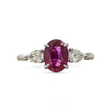 127. Bague sertie d'un rubis (env. 1.4 ct) épaulé de deux diamants taille poire