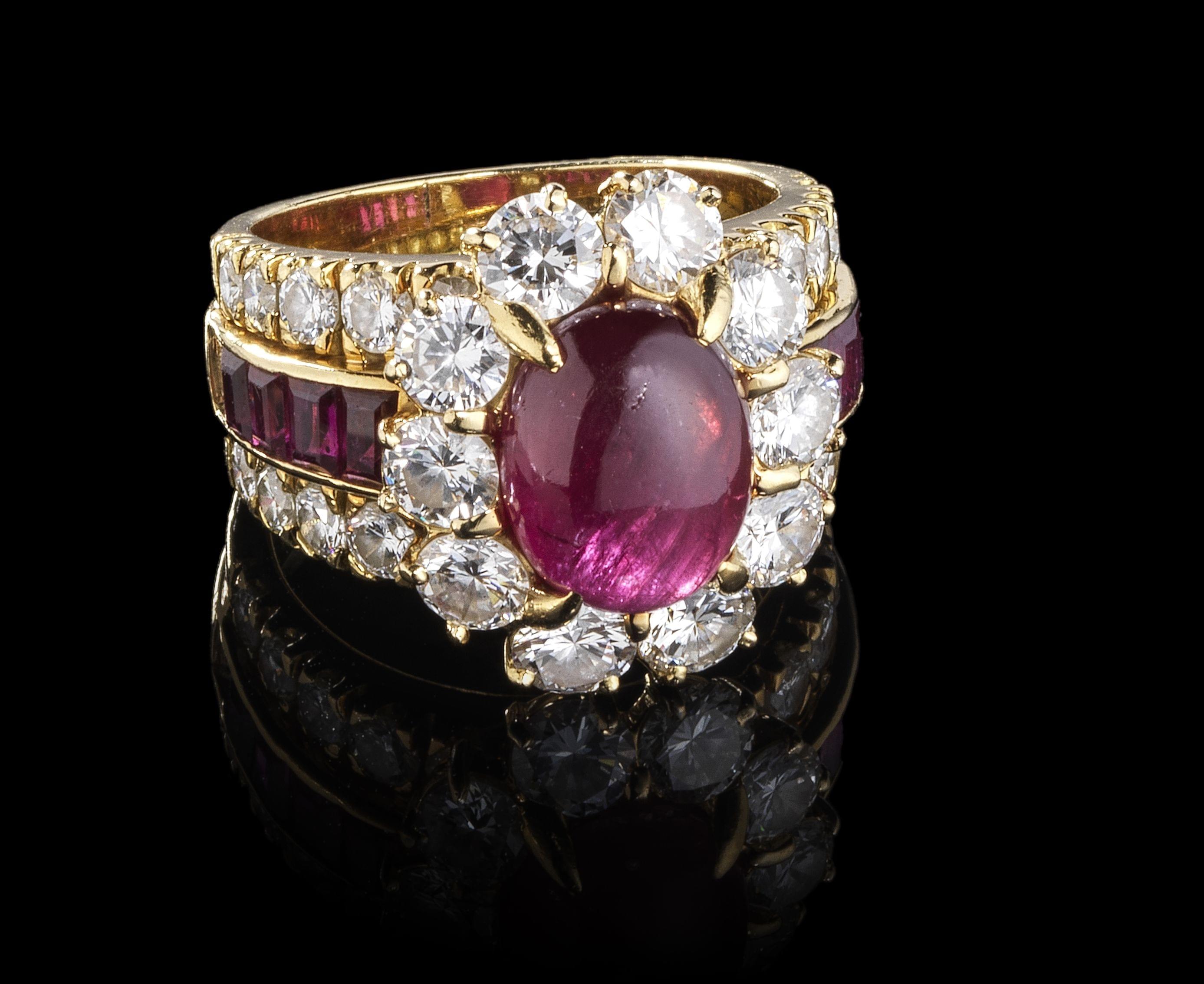 53. Bague sertie d'un rubis taille cabochon ovale (env. 4 ct)