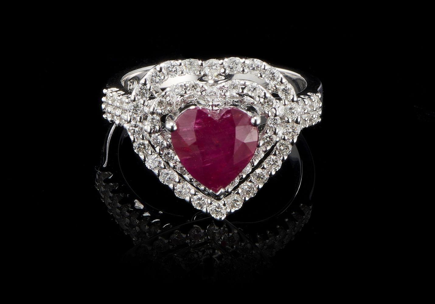 178. Bague sertie d'un rubis taille cœur entouré de diamants (env. 0,8 ct)