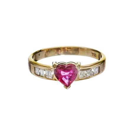 248. Bague sertie d'un rubis taille cœur (env. 1.3 ct) épaulé de diamants taille princesse