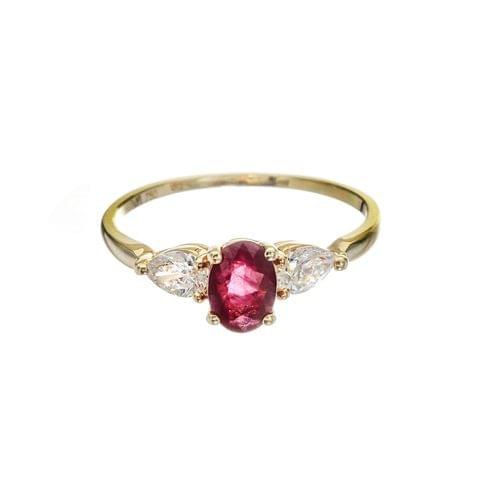 250. Bague sertie d'un rubis taille ovale (env. 0.8 ct) épaulé de deux diamants taille poire