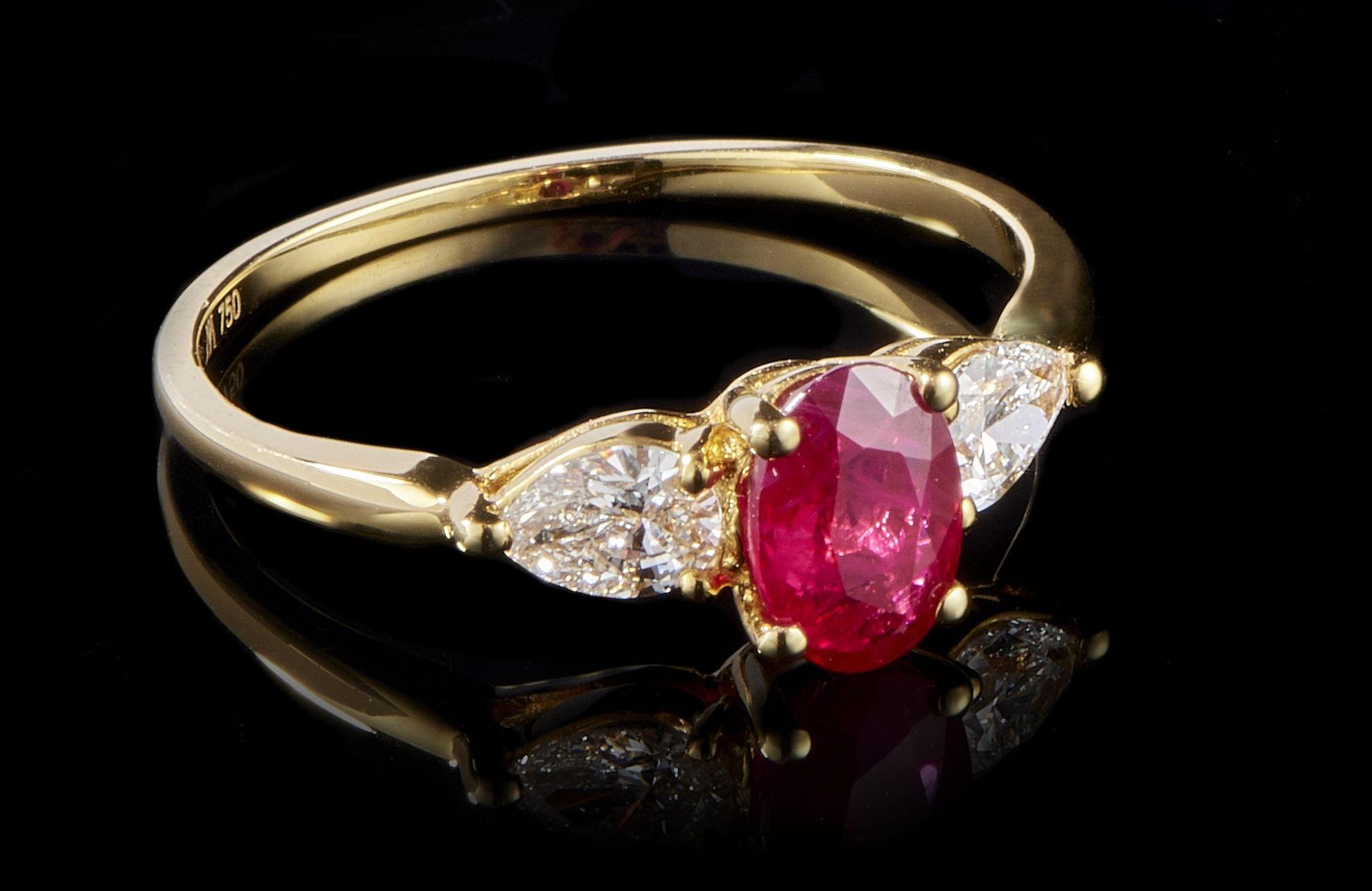 37. Boutons de manchette en cristal de roche sertis de rubis taille...