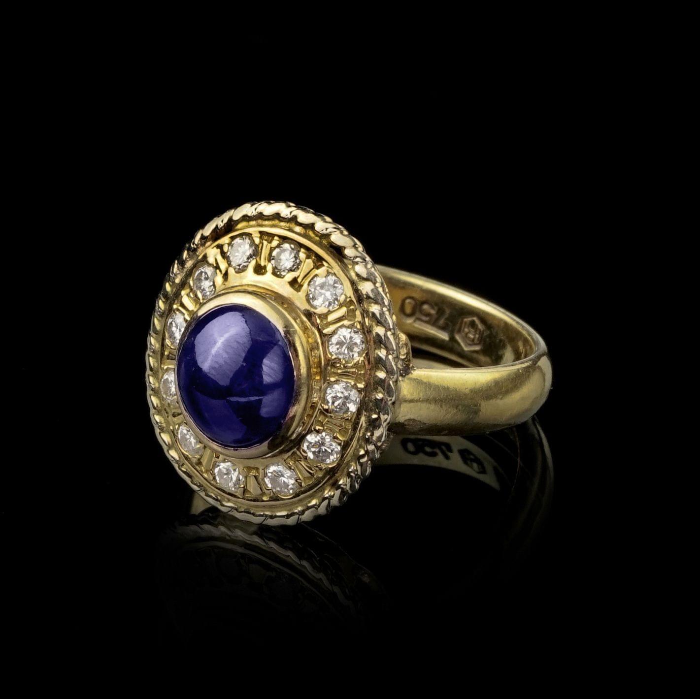 717. Bague sertie d'un saphir cabochon entouré de diamants