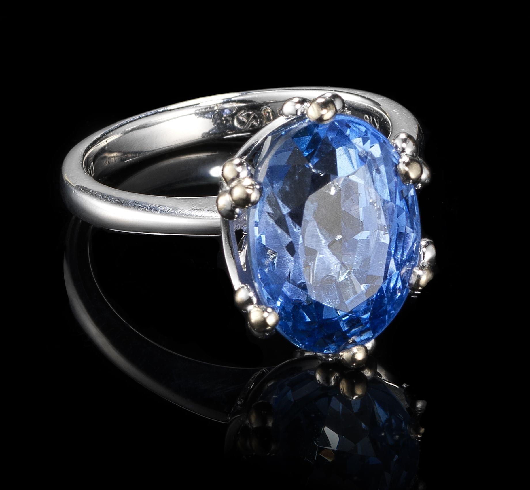 Aiguilles bleuies, index bâtons noirs, or gris 750, 18x15 mm, po...