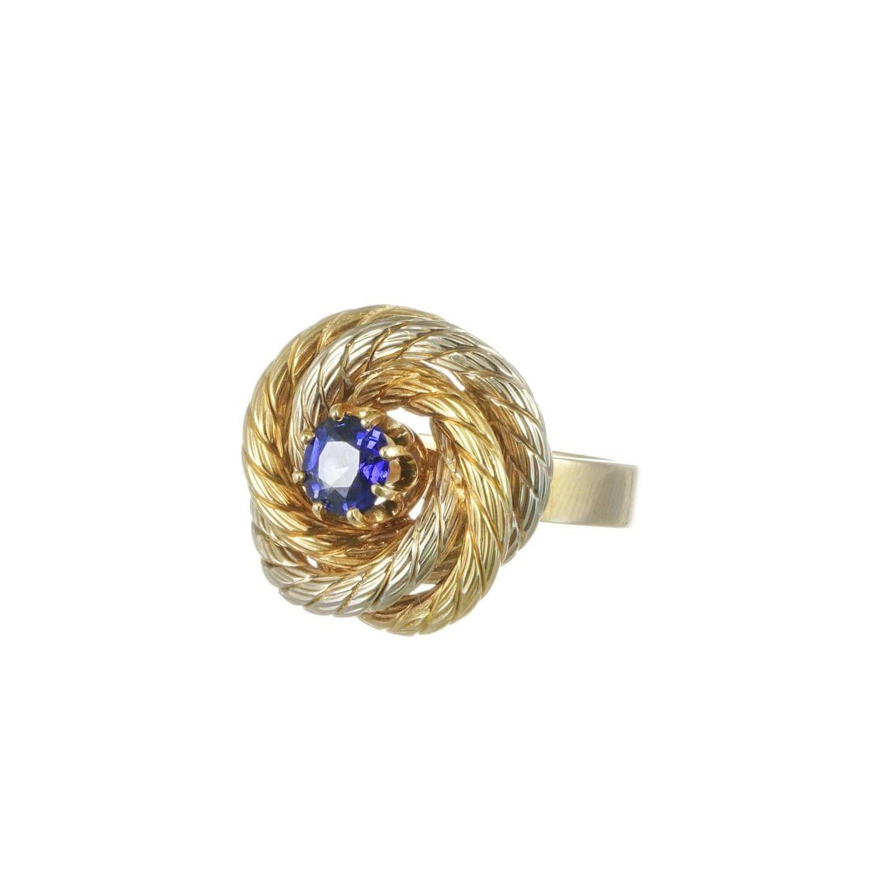 3379. Bague sertie d'un saphir dans un entrelacs deux ors