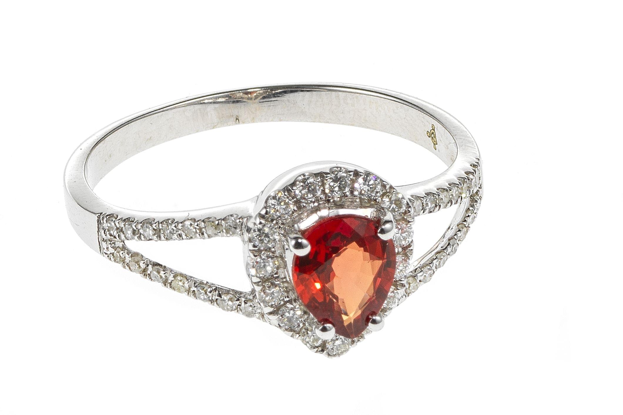 3197. *Bague sertie d'un saphir orange taille poire (0,78 ct) sur une monture semi pavée de diamants (env. 0,2 ct)